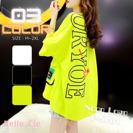 派手かわ×体型カバー!映えるネオンカラーで一枚でキマるロゴT!