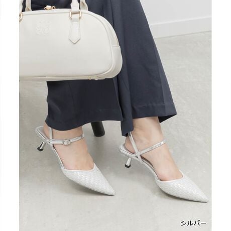 編み込みデザインがシーズンムード高まるアンクルストラップパンプス。