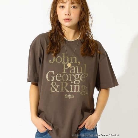 ビートルズのメンバー名を、ゴールドラメで華やかにプリントしたロゴTシャツ。