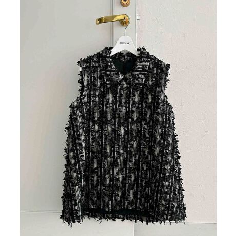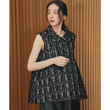 【2026SS】襟付き ツイード ノースリーブブラウス オフィス リボン