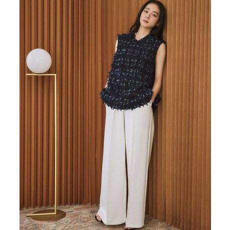 【2026SS】襟付き ツイード ノースリーブブラウス オフィス リボン