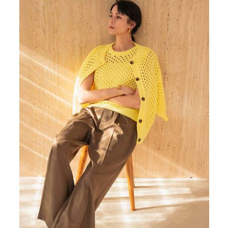 マルチウェイで活躍すること間違いなしのメッシュ編みノースリトップスとカーディガンのアンサンブルです。