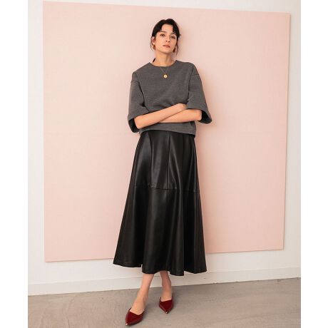 【2026SS】フェイクレザー ミモレ丈 フレアスカート