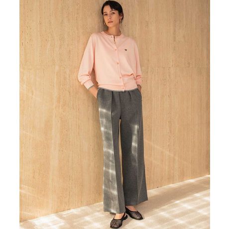 ウエストにテンションのあるゴムを使用し、ピンタックのディティールを採用したストレートワイドパンツ。