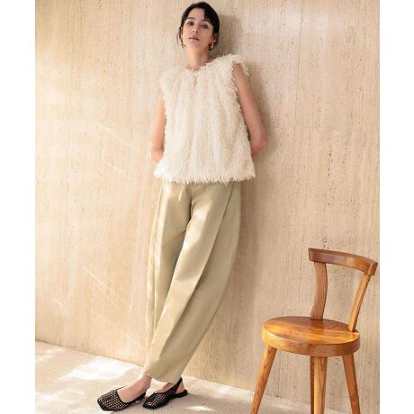 大きなデザインプリーツがお腹やお尻の膨らみを上手く隠してくれるので、美脚効果抜群です。