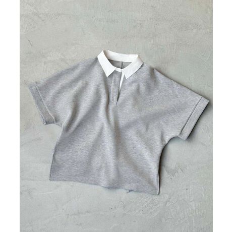 カジュアルになりがちなポロデザインをドルマンシルエットと光沢感のあるダンボール素材使いでモードにアップデート。