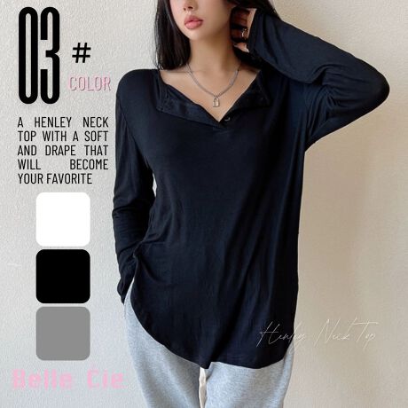 -テロンと程よい落ち感が癖になるヘンリーネックトップス