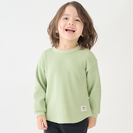 凹凸感が特徴的なワッフル生地の長袖Tシャツです。
