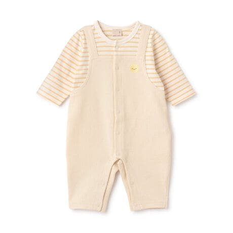アニマルの刺しゅうがポイントになったサロペット風のカバーオールです。
