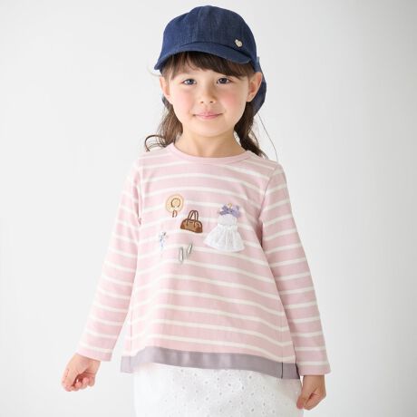 さまざまなお洋服のモチーフデザインが可愛い長袖Tシャツです。