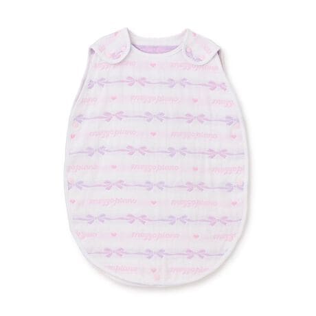 おねんねする姿もかわいらしく演出する、リボンとロゴボーダー柄のスリーパーです。吸水性や速乾性の高い、お手入れ簡単な素材を使用。掛布団の代わりにもなるため、肌をやさしく包み込んで赤ちゃんの寝冷えを防いでくれます。上下左右にスナップボタンを備えており、着脱しやすいのもうれしいポイント。新生児から3歳ごろまでご使用可能で、自宅用はもちろん、ギフトにもおすすめです。【おすすめの着用時期は春夏シーズン】