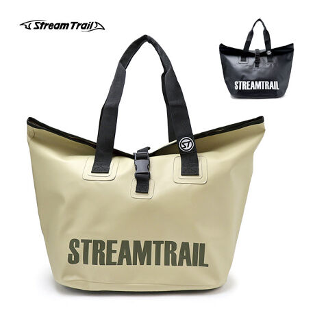 シンプルなバケツタイプのトートバッグに、Stream Trailらしい防水性と機能性をプラスしました。ボトムとサイドにはウェルダー加工を施しているため、濡れた場所に置いても水が浸透する心配がありません。既存モデル「BLOW」をベースに、開口部をフラップ仕様へと延長。フラップ部分をロールまたは折り曲げてセンターバックルで留めることで、中身の飛び出しや突然の雨・水しぶきから荷物をしっかり守ります。容量は32Lと十分で、フラップを折り返した状態では「BLOW」と同サイズ。アウトドアやタウンユースに幅広く活躍する、頼れるトートバッグです。