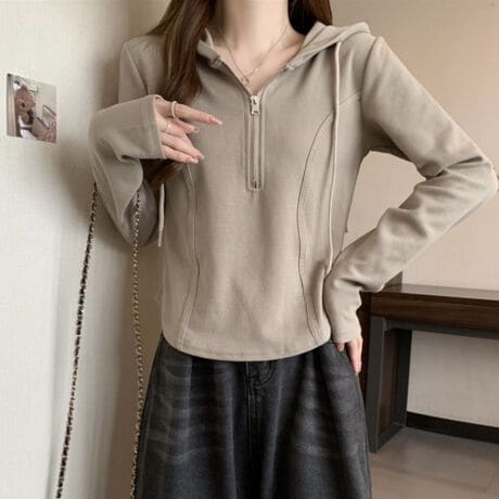 -一枚で様になるフード付きの長袖トップス
