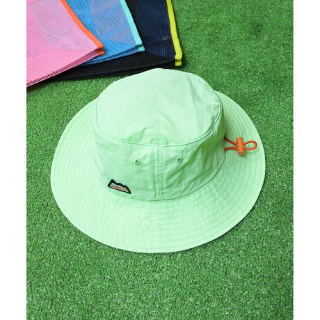 ツバ広のシルエットでしっかり日差しをカバーしつつ、サイドのドローコードがさりげないアクセントに。