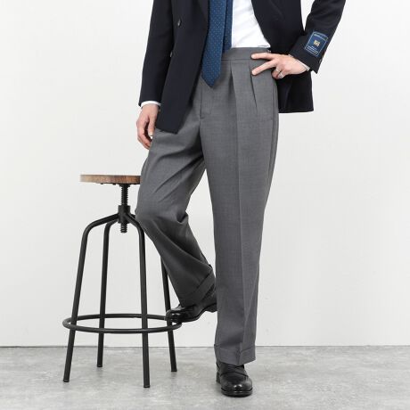 シック布(オーダーメイドのスーツでは標準仕様になっていることも多いスラックスの股部分に縫い付けられた補強用の布)を装備。