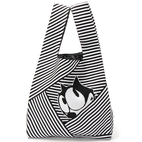 世界で最も有名な黒猫「フィリックス・ザ・キャット」は1919年映画の主人公として誕生し、日本では1980年代に一大ブームを起こしました。コミックスやアニメーション、そして商品を通じ、彼の名前の由来である「フェリシアス=幸運を招くネコ」として、どんな状況にあっても諦めない不屈の精神と、周囲への大いなる優しさを発揮し、世界中で活躍し続けています。2024年に105周年を迎えました。【素材】程よい厚みのあるポリエステル糸を使用しました。ドット柄の裏地付きです。【デザイン】「フィリックス」がボーダーの中から覗いているようなデザインをニットのジャカード編みで表現したバッグ。背胴側は「フィリックス」の後ろ姿のデザインになっています。スーパーの袋の様なシンプルな形のバッグなので、使いやすく大容量なもの嬉しいポイントです。左脇にフラボアのピスネームが付いています。【ブランド情報】FRAPBOIS/フラボア2001年にブランドスタート。「大人げない大人の服」をコンセプトに、大人が着るリラックスしたデイリーウェアを提案するコレクションブランド。レディースとメンズのアイテムをご用意しています。