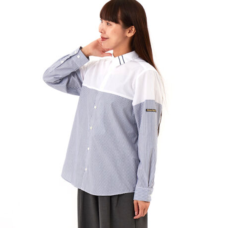 【素材】ポリエステル/綿のキレイめなシャツ素材をストライプと無地で組み合わせました。【デザイン】バスクシャツをイメージしてシンプルでスッキリとしたシルエットのシャツをベースにストライプと無地の組み合わせでマリン調に仕上げています。衿のテープや腕元に付いたネームなど細かなところにもこだわりが満載です。*こちらの商品はユニセックス商品です。【ブランド情報】FRAPBOIS/フラボア2001年にブランドスタート。「大人げない大人の服」をコンセプトに、大人が着るリラックスしたデイリーウェアを提案するコレクションブランド。レディースとメンズのアイテムをご用意しています。