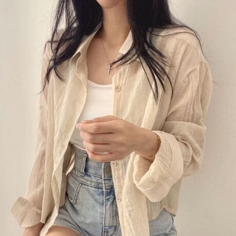 -ガーゼの手触りで心地いい素材のシアー開襟シャツです。