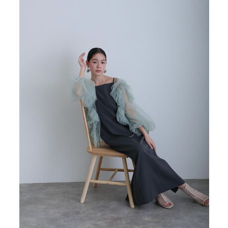 ■バックフリルが映えるチュールドレス