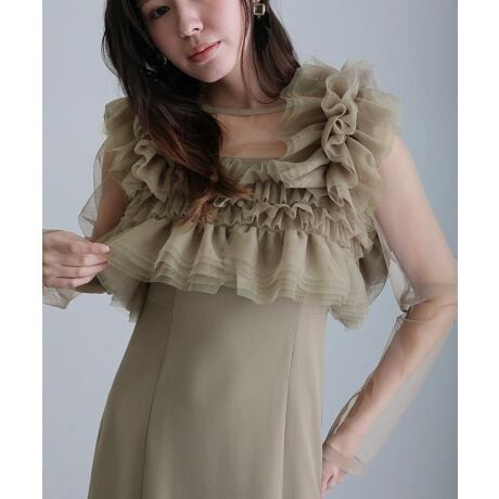 キャミワンピース・チュールインナー・フリルベストが揃った、大人フェミニンな3点セットドレス。