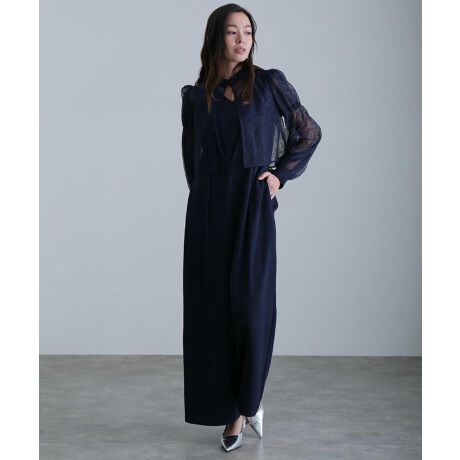シアー素材とオールインワンを組み合わせた、上品なレイヤード風デザイン。