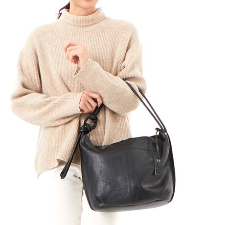 ハンドル部分の結び目がデザインポイントになったワンショルダーバッグです