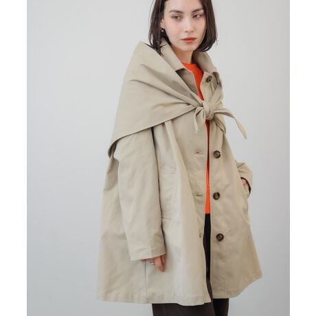スカーフ付きデザインが目を惹く、春らしい軽やかさのあるスプリングコート。付属のスカーフを首元に巻いたり、外してシンプルに着たりと、表情を変えて楽しめるのが魅力です。程よくゆとりのあるシルエットで、厚手のトップスの上からでも羽織りやすく、体型を自然にカバー。ベーシックなカラー展開で、通勤からデイリーまで幅広いシーンに活躍します。トレンド感のあるディテールを取り入れつつ、長く愛用できる一着です。
