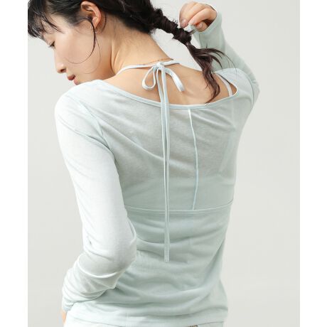 一枚で旬のレイヤードスタイルが完成する、ホルターレイヤードカットソー。ホルターネック風のデザインが、デコルテにさりげない抜け感をプラス。腰まわりには結び紐をあしらい、シルエットにメリハリをつけられるのもポイントです。シンプルながらも着こなしにニュアンスが生まれる、存在感のある一枚に仕上がりました。腰まわりの紐は2周巻きにすることで、自然にウエストマークできバランスよく着用可能です◎