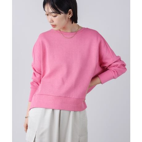 シンプルなデザインながらも立体感が引き立つシルエットの美しいプルオーバーです。大人カジュアルで上品な光沢感のある糸を使用したカットソー生地を使用