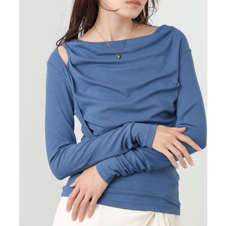 やわらかなドレープが女性らしいニュアンスを演出してくれる、カシュクールレイヤードトップス。流れるような立体感が自然と視線を上に集め、スタイルアップ効果も◎さらに肩部分はさりげない肌見せデザインに。大胆すぎない抜け感が、大人の余裕を感じさせてくれます。ホワイト・イエロー・ブルー・ブラックの4色展開で、ベーシックにもアクセントにも使える一枚です。
