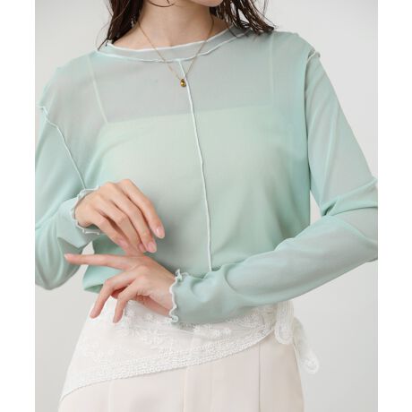 繊細なシアー感とメローデザインが魅力の、シアーメロートップス。程よく透ける素材感と、さりげなく効かせた配色メローがスタイリングにニュアンスをプラスしてくれます。前後2WAYで着用でき、その日の気分やコーディネートに合わせて印象を変えられるのも嬉しいポイント。