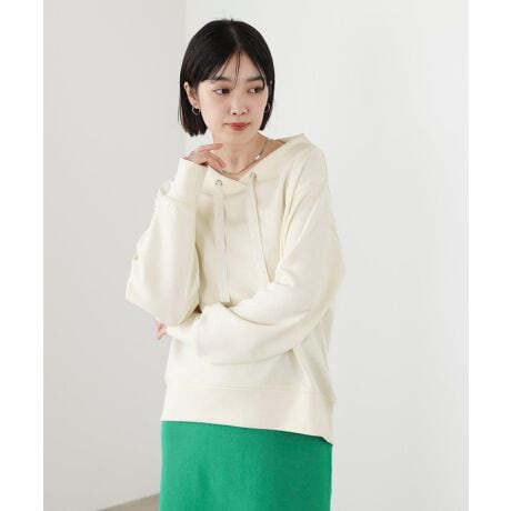 程よく抜け感を演出する“抜き衿”デザインが魅力のダンボールプルオーバー。首元に自然なゆとりを持たせることで、女性らしい柔らかな印象をプラスします。身体のラインを拾いにくい立体的なシルエットで、リラックス感がありながらもすっきり見えを実現。シンプルながらも今っぽさのあるフォルムで、デイリーに取り入れやすい一枚です。