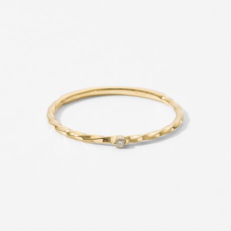 ツイストしたラインに繊細にきらめく一粒のダイヤモンド。