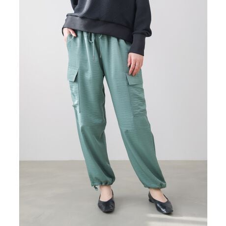 カジュアルに見えがちなカーゴパンツを光沢感のあるサテン生地できれいめ上品に着られるよう仕上げました。