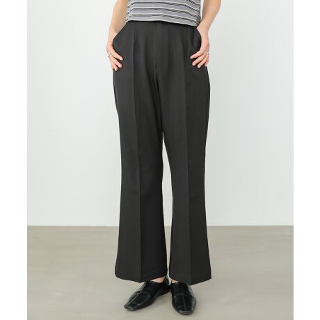 脚をすらっと長く見せてくれる、ストレッチツイル素材のセミフレアスラックスパンツ。膝下からやや広がる絶妙なフレアラインが、きれいめながらもどこか女性らしい柔らかさをプラスしてくれます。センターラインが縦のラインを強調し、自然とスタイルアップ見えが叶う一枚。後ろウエストはゴム仕様なので、きちんと感がありながらもストレスフリーな穿き心地に。デイリーにもお仕事にも頼れる万能スラックスです。
