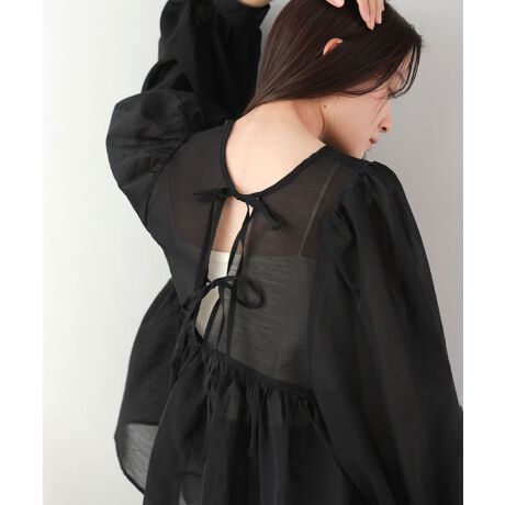 Babらしいボリュームスリーブがスタイル全体を優しく見せてくれる、フェミニンなプルオーバーブラウスが登場しました。フラットなくるみボタンが連なったナチュラルな雰囲気と、結び方で襟開きが遊べる紐リボンの前後2WAYでお召し頂け、その日の気分でがらっとイメージをチェンジできます。程よいシアー感で透けすぎないので、上品で大人可愛くお召し頂けるところも魅力的。広めにとったアームと、ギャザーでふんわりしたシルエットが体型カバーもかなえてくれます。