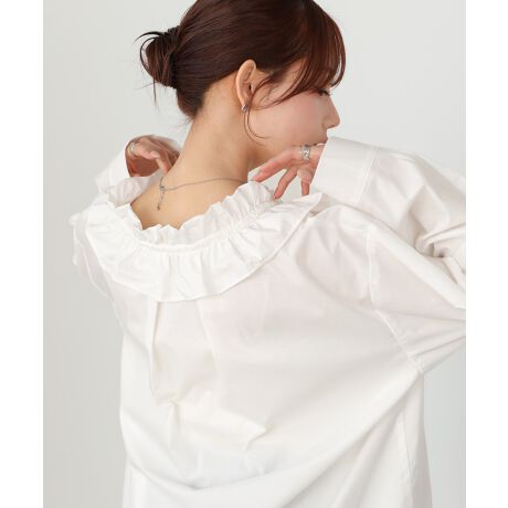 スラックスと合わせてきれいめオフィススタイルに。タイトスカート合わせなら、より女性らしい印象にまとまります。デニムと合わせてカジュアルダウンするのもおすすめ。フリルを主役に、ボトムはシンプルにまとめるのがバランス良く着こなすポイントです。ジャケットやベストのインナーとしても映えるので、着回し力も抜群の一枚です。