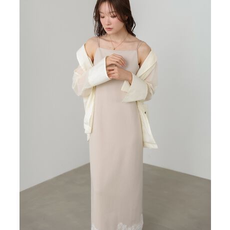 繊細な裾レースが女性らしさを引き立てる、キャミワンピース。すとんと落ちるIラインシルエットで、体のラインを拾いすぎず、上品で大人っぽい印象に仕上げました。華奢な肩紐デザインが抜け感を演出し、1枚ではもちろん、羽織りとのレイヤードスタイルも楽しめる一着。サイズ展開が選べるため、身長や好みの丈感に合わせて着用いただけます。柔らかく女性らしいベージュと、シックで洗練されたチャコールの2色展開で、オンオフ問わず幅広いシーンに活躍します。