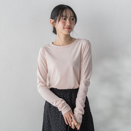 ニット、ジャケット、ベストのインナーはもちろん、ワンピースやサロペットのインナーとしても長い時期で着用できる万能トップスです。
