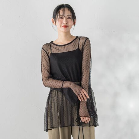 繊細なドットチュール素材で透け感と立体的な表情がポイントです。