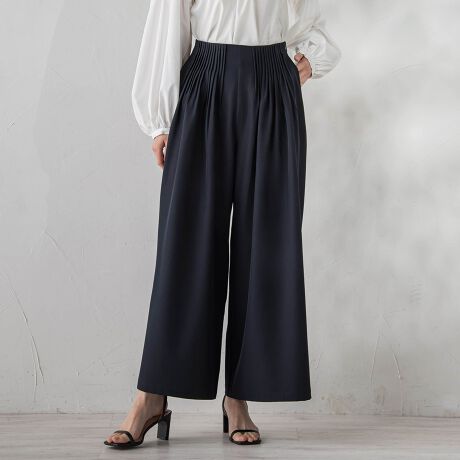 ウエストはゴム仕様で、キレイ見えしながらもストレスフリーな着心地が魅力。