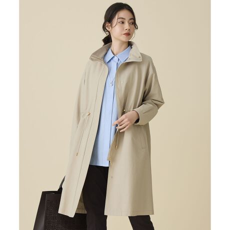 オンオフ頼れる程よい広がり感のあるスタンドカラーコート■デザイン今年らしい高さのあるスタンドカラーのライトコートです。大きめの衿がお顔周りを程よく華やかに見せ、すっきりとした印象を与えます。身頃は袖ぐりの下部を低めにし、抜け感のある今年らしいシルエットに仕上げています。また、ボリュームのあるインナーの上にも羽織りやすいバランス感です。ウエストのドロストでシルエットを調整でき、気分やコーディネートに合わせて着こなしが楽しめます。さらに、取り外し可能なライナー付きで、気温や季節に応じて快適に着用できるのも魅力です。寒い時期から春先、また秋から初冬まで長く着用頂けます。■素材繊細な綿の横畝の表情が特徴のタッサー素材です。綿ならではの天然素材のタッチと、ナイロンの特徴である軽さとしなやかさを併せ持った風合いで、見た目よりも軽い素材です。撥水加工を施しております。ライナーはタテヨコ共にポリエステル50デニールのマイクロファイバー糸を使用した高密度のタフタ素材です。マイクロファイバーなので上品なしなやかさがあります。■同素材ブルゾン(JKW7GM0201)ブルゾンII(JKW7LS6201)