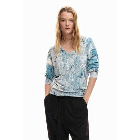レギュラーフィットの長袖で細かいゲージのセーター、コラージュスタイルのプリントデザイン付き。
