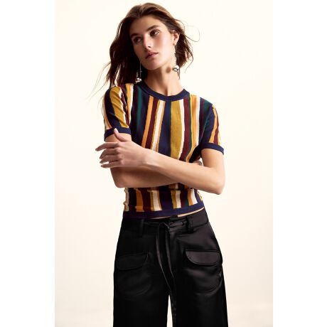 クリスチャン・ラクロワ氏がデザインしたストライプ柄のジャージ素材で仕立てられたレギュラーフィットのTシャツ。