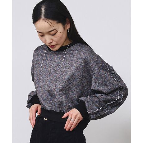 ラメ感が映えるフリルスリーブ裏毛ショートトップス