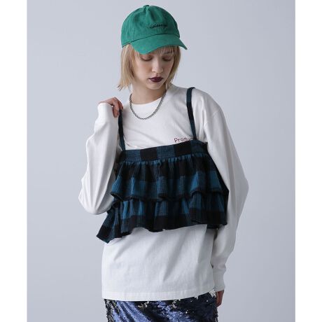華やかなフリルがスタイリングのアクセントに最適なワッフルチェックビスチェ
