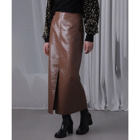 トレンドのグランジ要素にぴったりのパテントレザーライクスカート