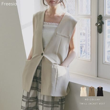 ノーカラー ツイル ジャケット ベスト Freesia フリージア