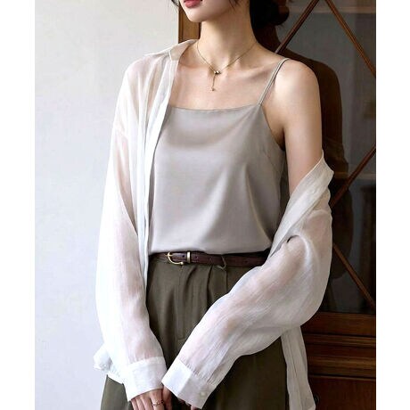 例えば、薄手のブラウスや透け感のあるシャツのインナーに合わせることで、見た目も涼やかで女性らしい印象に。