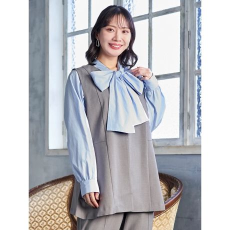 リボン結びをしたボウタイブラウスの上に重ねるとレディなムードがプラスされこなれた印象に仕上がるのでおすすめです。